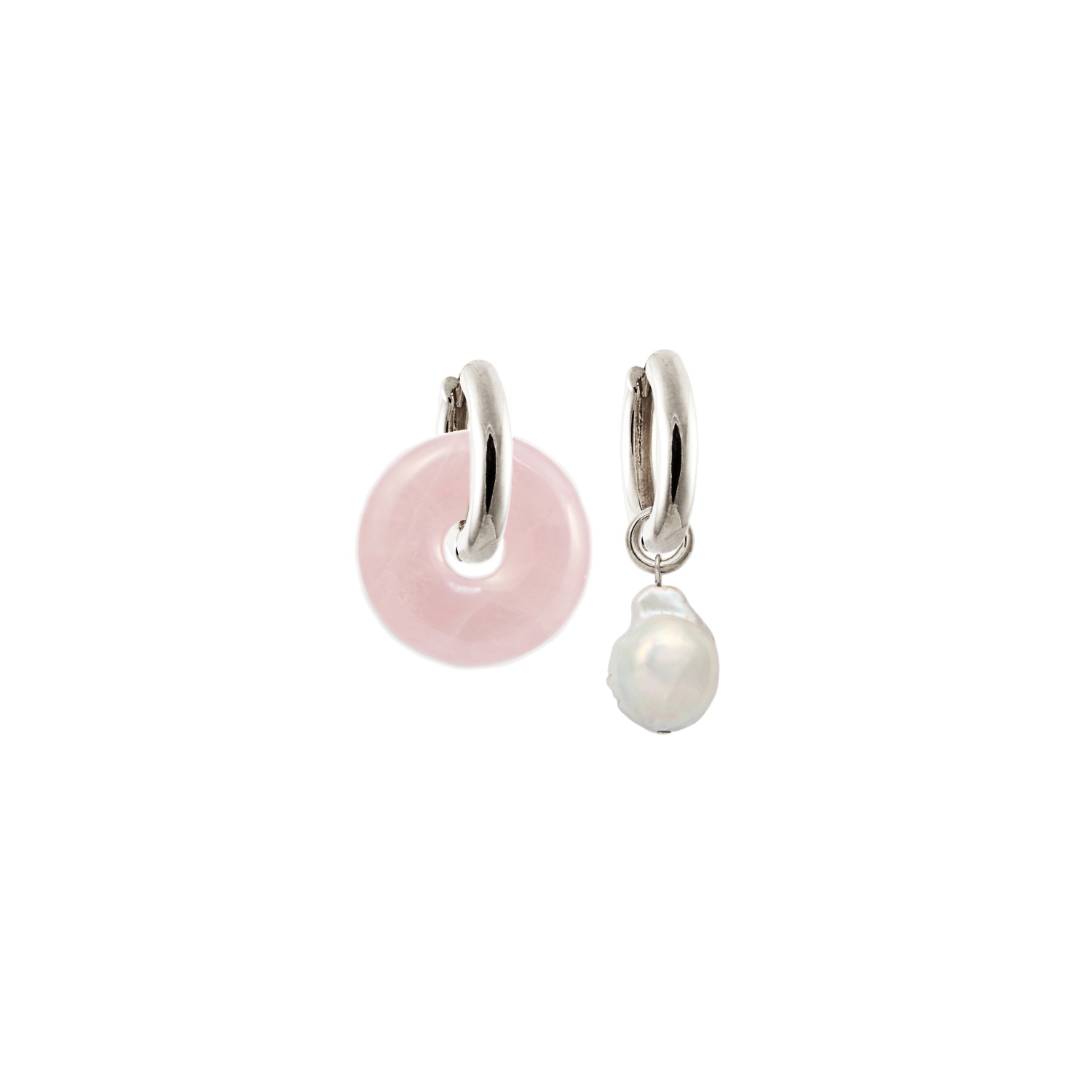 Donut Rosenquarz und Anhänger Süßwasserperle Silber Madeleine Issing