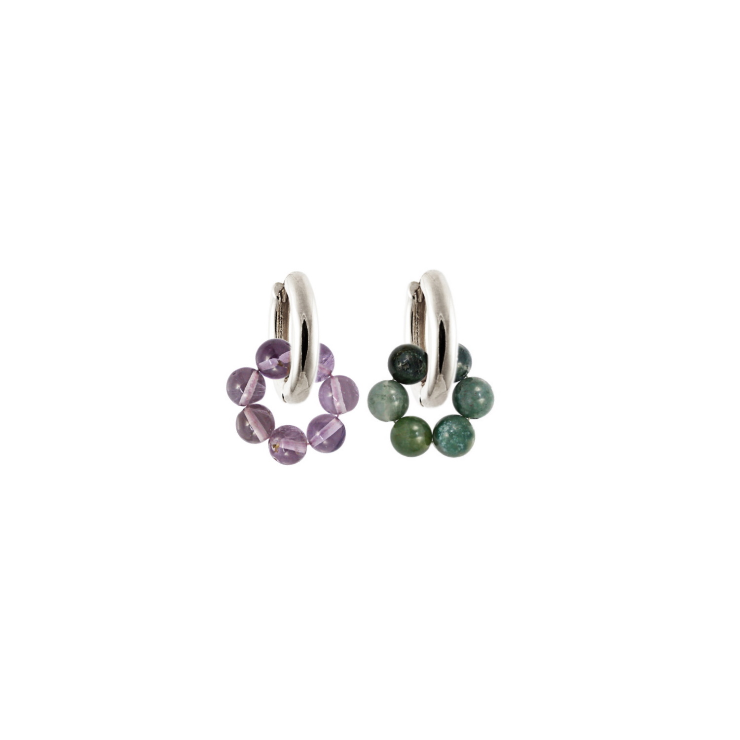 Perlenring Amethyst und Perlenring Moosachat Silber Madeleine Issing